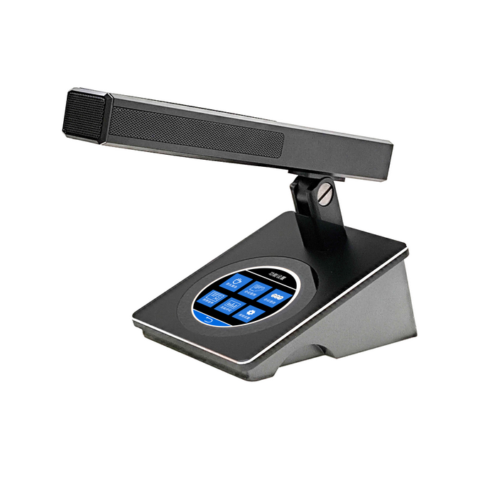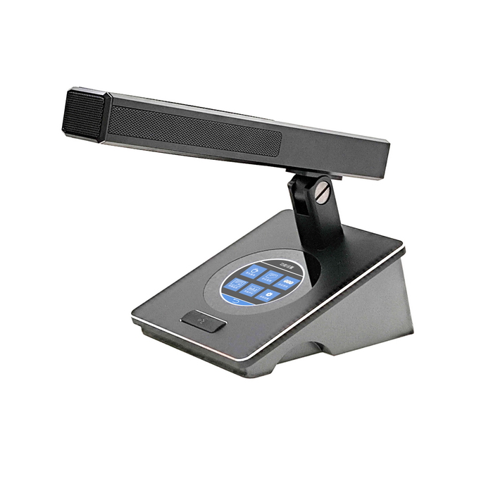 ,支持中文和英文语言显示界面,使用简单方便,采用专业的DSP芯片,有自动增益、增益噪声阀、音量调节等功能,使发言者声音清晰通透,内置数字DeviceNet地址,支持HD-Sound网络传输协议,有讨论发言、摄像跟踪等功能。